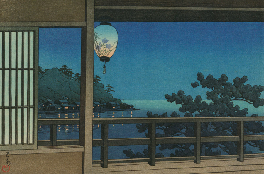 Summer Evening in Enoshima | Vintage Japanese Woodblock Print by Kawase Hasui (1952)